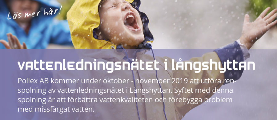 Pollex AB kommer under oktober - november 2019 att utföra renspolning av vattenledningsnätet i Långshyttan på uppdrag av Hedemora Energi. Syftet med denna spolning är att förbättra vattenkvaliteten, och förebygga problem med missfärgat vatten. Arbetsmetod Den metod som kommer att användas innebär att luft och vatten leds in och ut i ledningssträckan via brand- eller [...]
