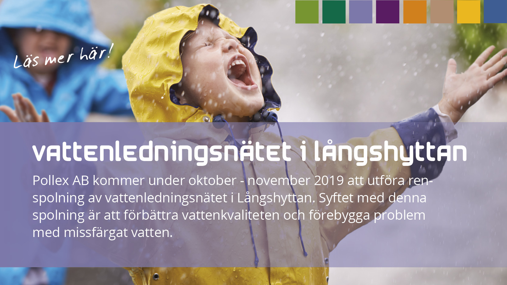 Pollex AB kommer under oktober – november 2019 att utföra renspolning av vattenledningsnätet i Långshyttan på uppdrag av Hedemora Energi. Syftet med denna spolning är att förbättra vattenkvaliteten, och förebygga problem med missfärgat vatten.